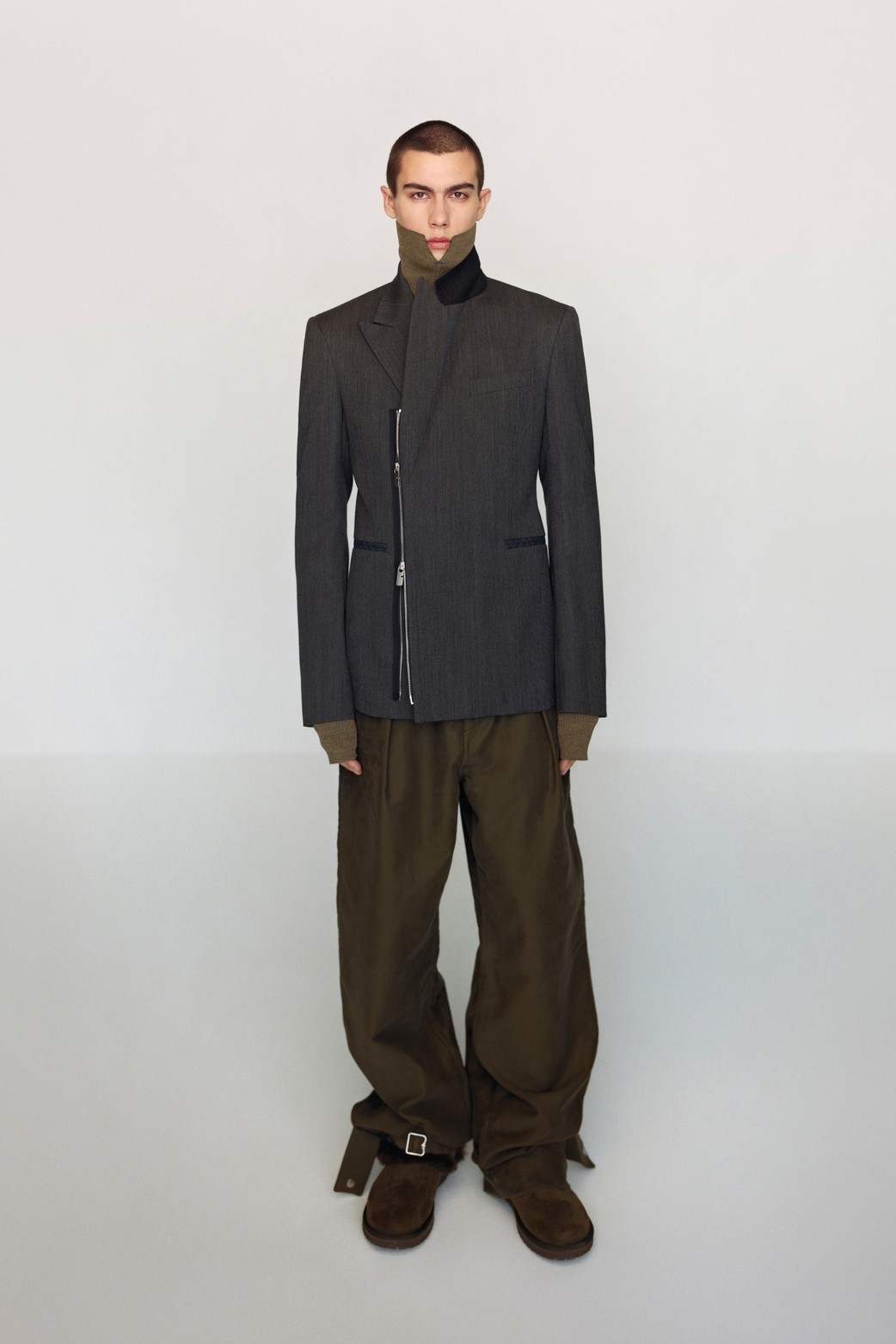 细节考究,令人眼前一亮。拉链既可用来调节褶饰半裙,也可替代双排扣大衣和量裁外套上的纽扣。成衣染色棉质工装裤两侧采用按扣设计。Knight 包型被重新解构,创意装饰粒纹小牛皮迷你裙。
