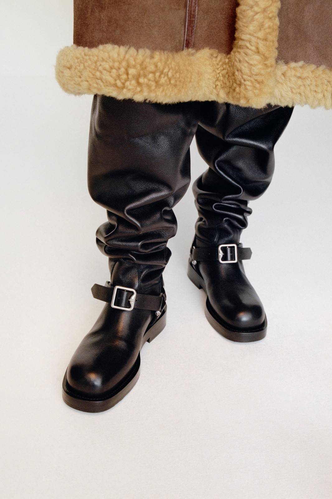 马术灵感 Stirrup 靴子推出踝靴和高筒靴,提升户外实用性。新款 Boulder 靴子选用橡胶精制而成,侧边饰以 Burberry 格纹。Log 鞋则以加厚麂皮精心打造。舒适鞋款还有配以毛羊皮和橡胶底的 Snug 靴子,以及饰以 Burberry 格纹的 Pillow 穆勒鞋。