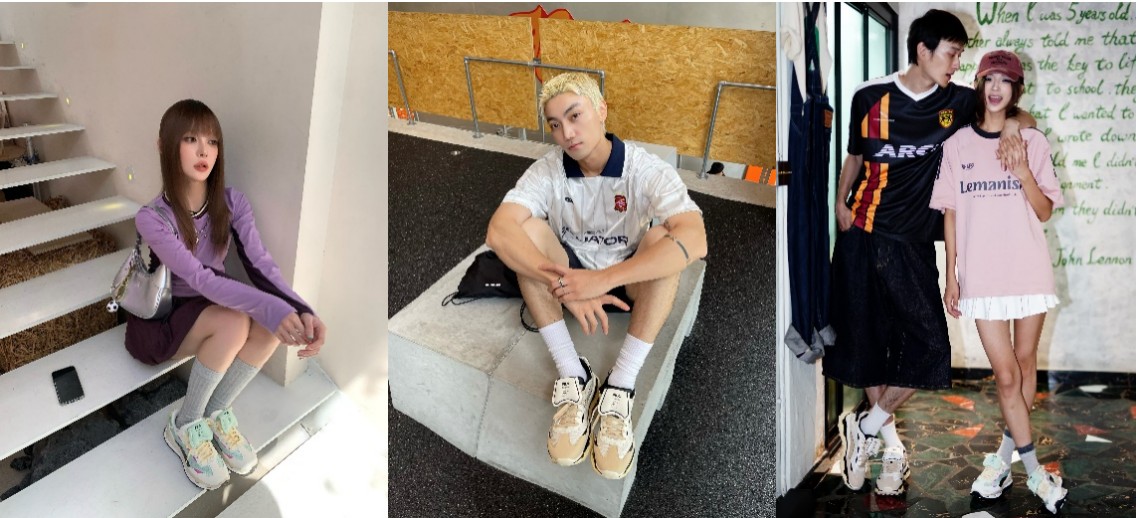这双拥有足球风格的老爹鞋也呼应了2024春夏最火的Blokecore、Jerseyfit风格穿搭,郭碧婷、INS博主、小红书博主也纷纷上脚演绎时尚叠穿法则。