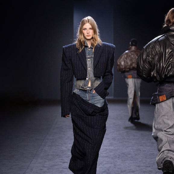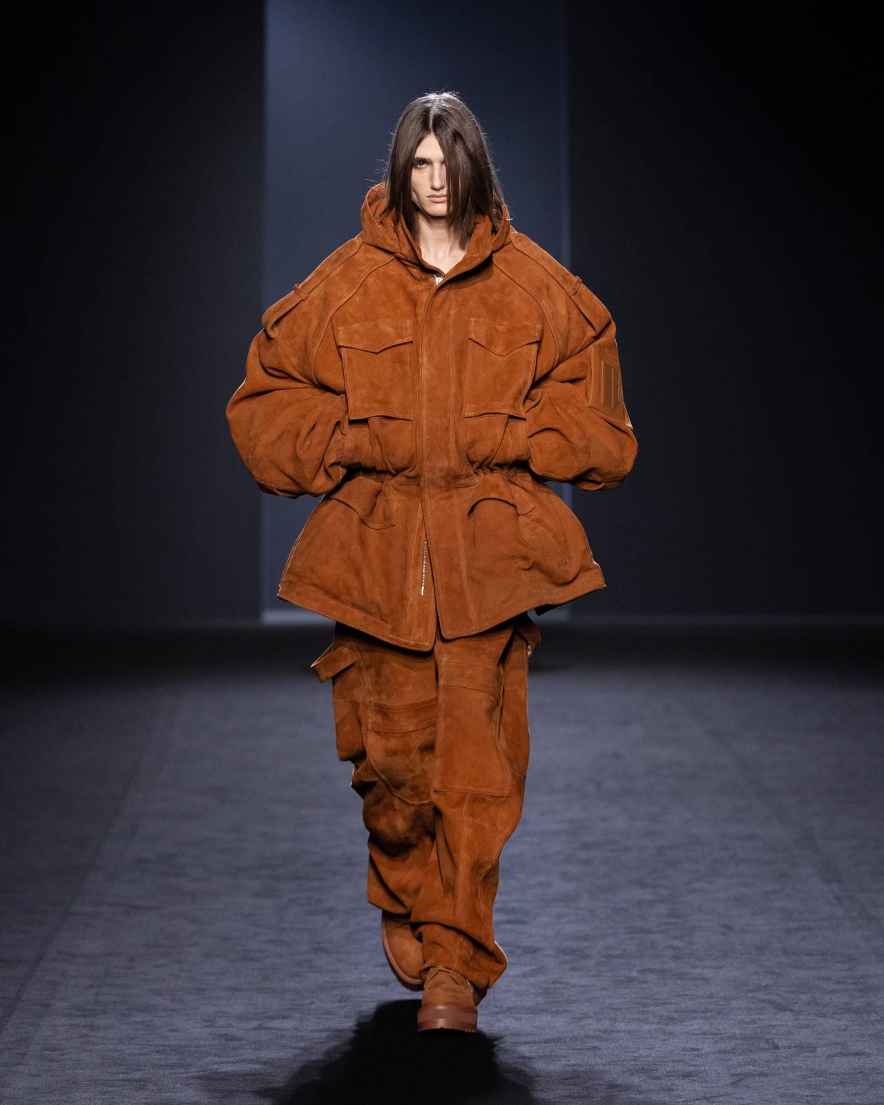 创意总监郑旭俊在此次系列中聚焦于元素的对比运用,将结构性与流动性相呼应,阐释细腻而大胆的设计语言。系列中38套造型将精致剪裁与宽松廓形深度融合,选用牛仔布和麂皮等材质,强调JUUN.J标志性的现代美学。
