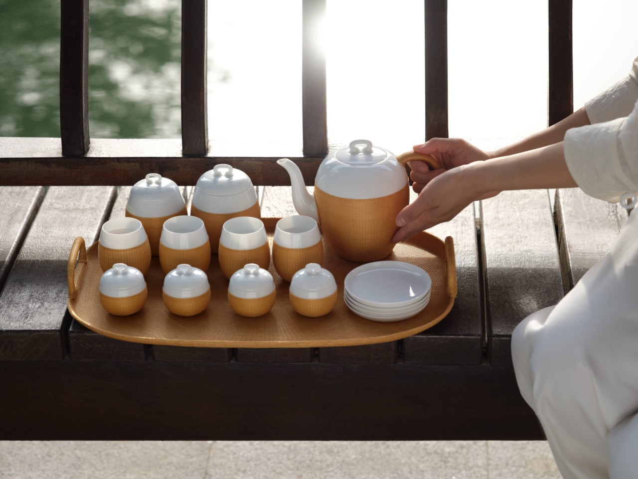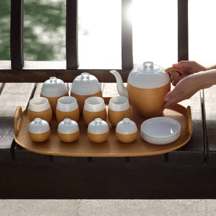 SHANG XIA上下桥系列竹丝扣瓷茶具套装-原竹色