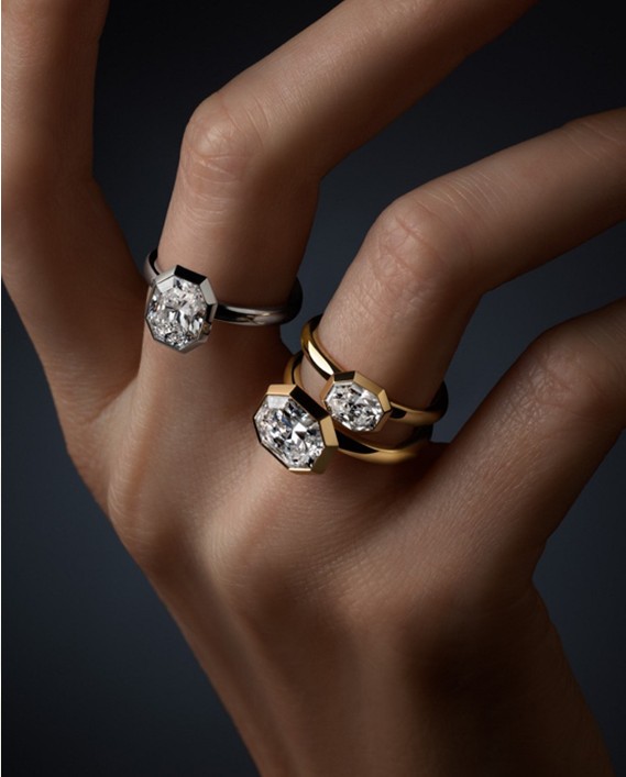 这一独特的切割技艺重塑了传统八角形,使其廓形更为流畅纤长。并蓄力量与柔美,糅合经典与锋芒。在这个系列的创作中,我希望化繁为简,通过纯粹的设计语汇,尽释钻光火彩与优雅几何之美。”