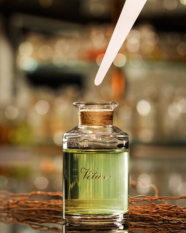 拂晓时分,热带植被苏醒,露珠沿茎滴落,潮湿泥土中升腾起馥郁香气,香根草将根须深植于湿润大地。瓶身的晶亮光泽与精致棱纹折射香氛的柔绿色泽,清新气息愈发鲜明动人。