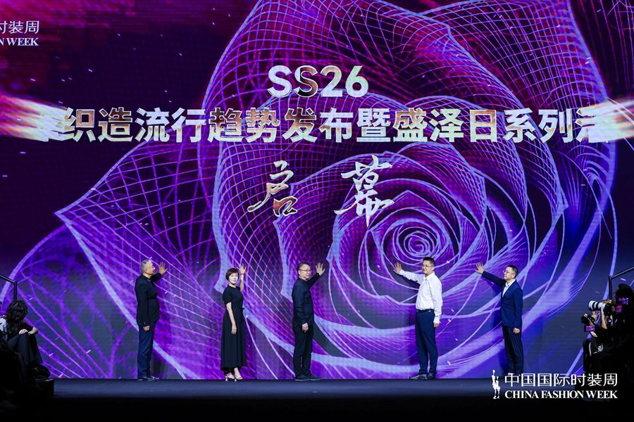 作为本次发布的重要环节,启动仪式为“盛泽织造”的集中亮相揭开序幕。现场,孙瑞哲、阎岩、杨健、陈宇、李波共同启动了“盛泽织造流行趋势发布暨盛泽日系列活动”,标志着盛泽以区域品牌为核心、联合本土优势企业的集体亮相正式启幕,也拉开了盛泽在中国国际时装周上集中展示产业实力与时尚价值的序幕。