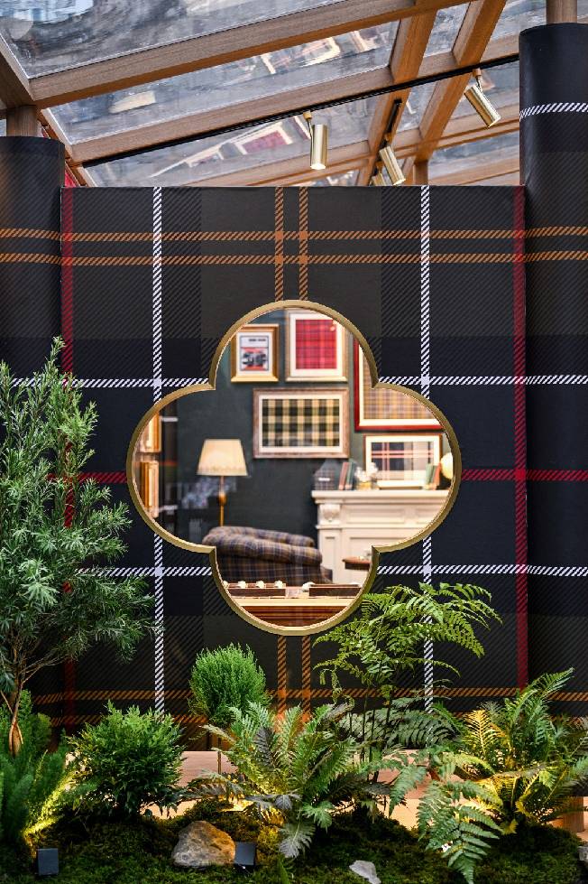 本次快闪活动位于成都太古里马家巷,整体的空间设计秉持“双承共叙,景建交融”的理念,巧妙融合英国Barbour家族标志性格纹图案与中国西部古蜀传统建筑风格,既延续品牌经典基因,亦致敬成都在地文化。快闪店外观以格纹元素为视觉基调。通过将品牌精髓、地域文化与建筑美学有机交融,这一独特空间为成都消费者带来一场贯穿东西、融汇古今的沉浸式文化体验。快闪店内陈列Barbour秋冬Tartan系列,呈现历久弥新的工艺与设计;更设有品牌独家Tartan格纹面料展示区,深入解读每一款格纹背后的历史渊源与美学密码。互动区域中,来宾可在特别定制的Tartan格纹香片上记录下感悟,并将其携回珍藏;亦或参与Tartan 格纹扇子DIY创作,定制独具个人风格的创意。