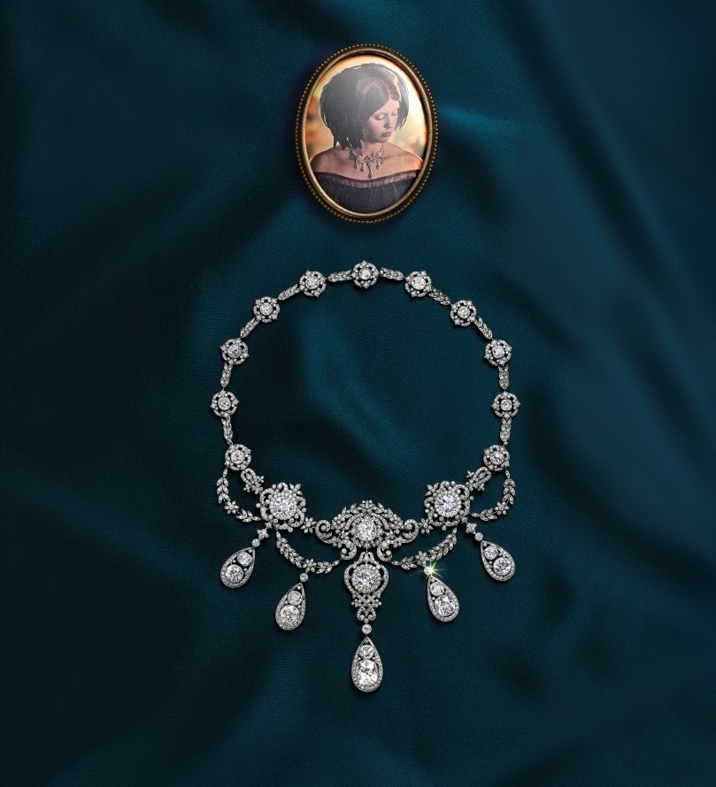 米娅·高斯饰演的伊丽莎白佩戴由黄金、铂金及钻石打造的蒂芙尼古董项链
