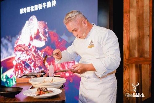 晚宴在热情的高原歌谣声中拉开帷幕,格兰菲迪品牌大使Roy带领嘉宾依次品鉴由两位大厨精心烹制的山海佳肴。从炭烤黑松露牦牛肋排的浑厚野性,到大红袍花椒焗重壳蟹的麻香鲜活,每一道菜都是对“鲜”的极致演绎。