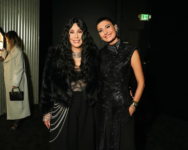 歌手、演员Cher(左)佩戴Swarovski Hyperbola系列项链,创意搭配Millenia系列项链、手链,多元灵感,尽显真我。