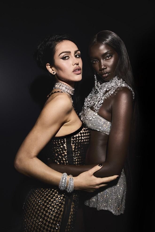 超模Anok Yai(右)时尚演绎Millenia系列项链,光彩夺目。