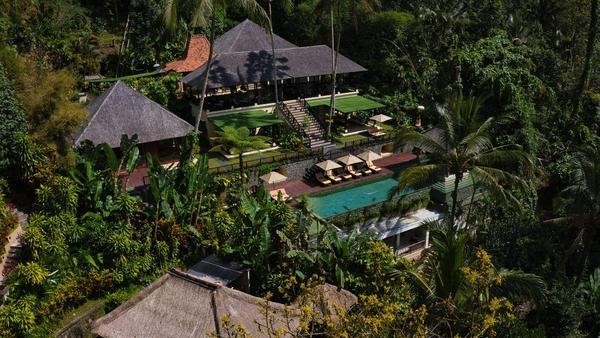 这座宫殿式别墅占地逾2000平方米,隐逸于苍翠雨林之中,既独立于度假村主体区域,确保高度私密,又与度假村整体环境浑然相融。历时六年,由逾六百名当地工匠倾力打造,这是一座展现本土工艺的匠心之作。宾客可从主大厅搭乘私人缆车抵达,穿过一扇来自爪哇Jepara、全手工雕琢的柚木大门,便步入一座Joglo式会客厅,其设计灵感源自爪哇贵族建筑风格,内设私人酒吧、酒窖及餐厅,尽显典雅气韵。