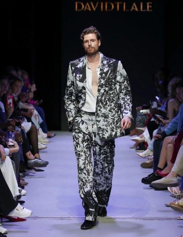 南非设计师David Tlale是非洲时尚界的明星人物,他的秀场引发了广泛热议。他亮相莫斯科时装周,足以印证这一盛事的全球影响力。David Tlale带来了两个系列作品,其中 Phenduka系列将观众带入一个以不对称设计与几何印花为特色的戏剧化世界。鸟类纹样为原本利落的西装增添了一丝精致感与诗意优雅,让整体造型更具格调。