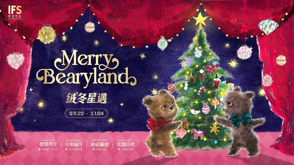 今年冬天,长沙 IFS 携手以温暖⼿绘⻛格⻅⻓的插画艺术家Tasha玉白带来“Merry Bearyland 绒冬星遇”全国首展。温暖无需刻意寻觅,每一次灯光亮起,都是一次温暖的邀请,长沙IFS构建亲密无间冬日场域,打破线上社交,邀请每一位邻居走进温暖毛绒与星光编织的城市客厅,沉浸体验4大艺术装置空间及8场“绮幻巡游”,重塑冬日温暖回忆。