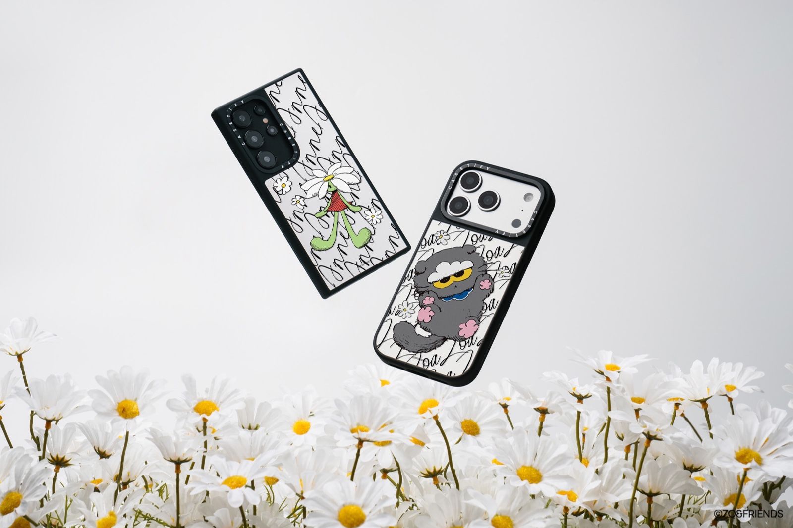 ZO&FRIENDS 这些因不够完美而更显完美的朋友们, 由 G-DRAGON 与 IPX 共同创作:动作迟缓、看似冷淡却温柔的云猫 ZOA ,可爱又爱管闲事的雏菊 A&NE ,以及从 “ZOA” 像云朵一样的脚印中诞生的调皮小彩球 AKI ZAKI ,共同呈现了一个充满乐趣的奇妙世界。作为 ZO&FRIENDS 在电子配件领域的首个联名合作品牌,CASETiFY 将 ZO&FRIENDS 的温暖能量融入电子配件,为多款机型及配件提供更加个性化的选择,让可爱与创意在日常中流动。