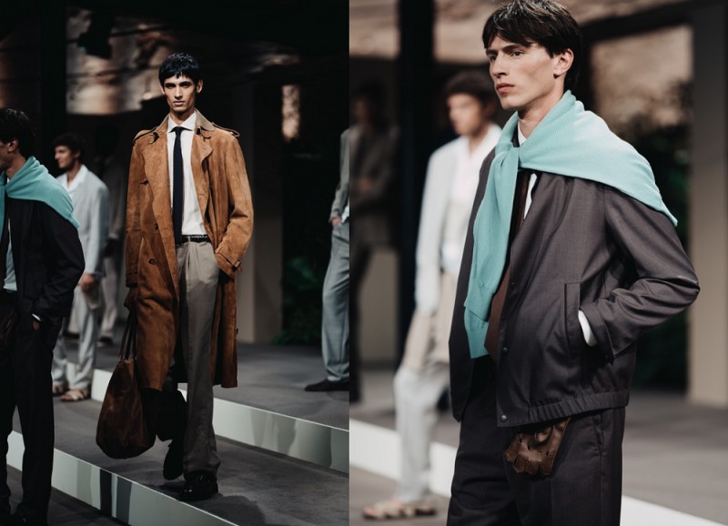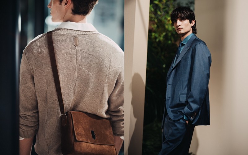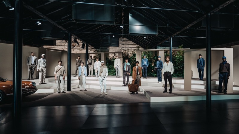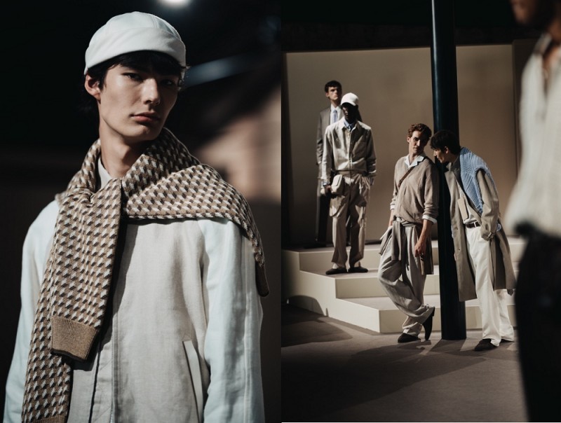 本季选用羊毛、棉、麂皮、真丝与针织等甄选面料,带来细腻触感。浅沙色、奶油白、棕褐色、烟草色、飞行员蓝、牛仔蓝与点缀的长春花紫等色彩构成春夏的温雅色调画板,柔和笔触,始终如一。软呢帽、乐福鞋与麂皮运动鞋及软底凉鞋,搭配柔软宽廓托特包,以配饰点睛造型,完整绅士衣橱。