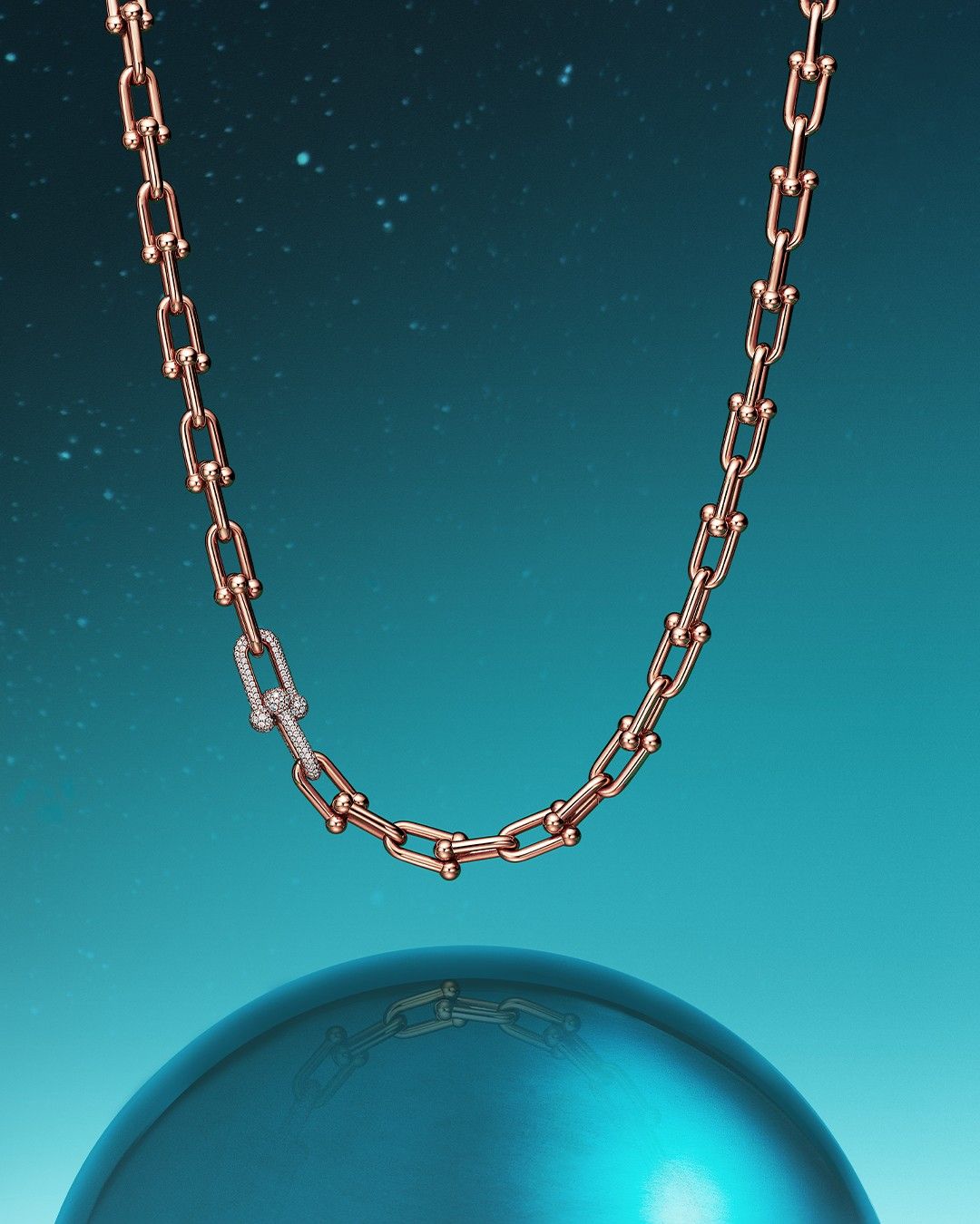 从上至下:Tiffany HardWear系列18K玫瑰金铺镶钻石及