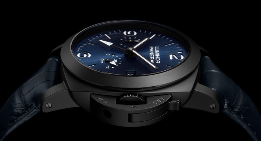 新作采用44毫米黑色陶瓷表壳,经过抛光与喷砂工艺处理,搭配烟熏色蓝宝石玻璃底盖和钛金属表背。腕表防水性能达30巴(约300米),在压力值高于标定数据25%的条件下进行严格测试,确保符合沛纳海的严苛标准。