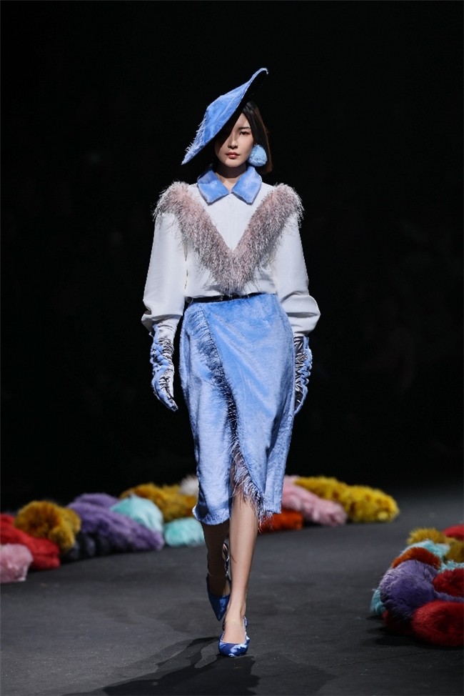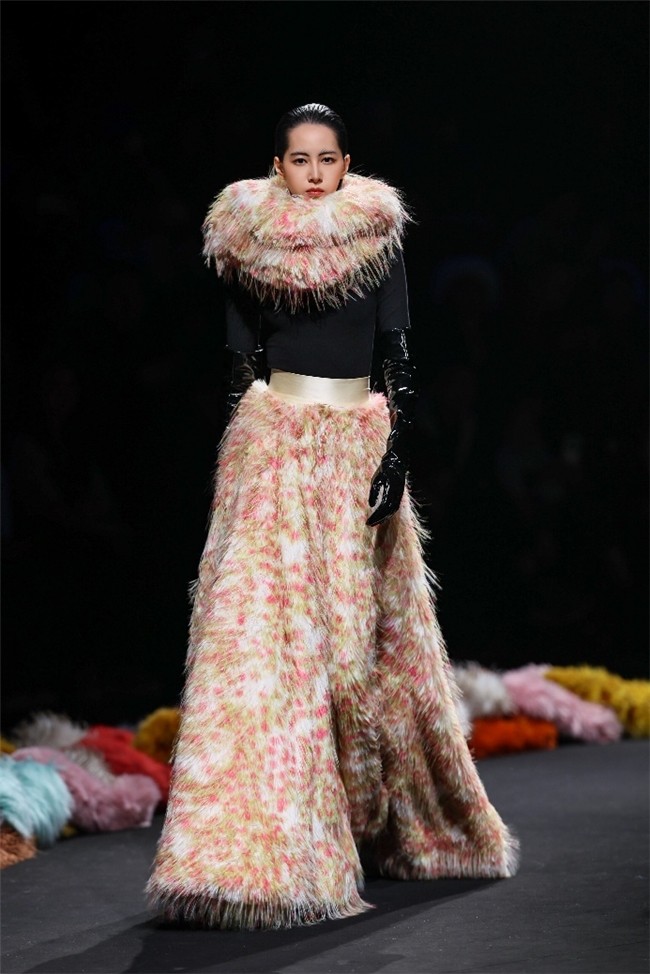 作为“AW26流行趋势发布秀”的华彩章节——本场发布秀由纬一多次合作的新锐设计精英张玮倾力打造。秀演以本季流行趋势的核心概念“聚势”为主旨灵感,将前沿趋势与设计巧思同纬一仿水貂、提花等优质面料深度碰撞,借由“雕琢、流淌、藏蕴、光影”四大主题篇章展开设计叙事。秀演在面料触感、光泽、质感的相融相生间,回归产品本质,于优雅、松弛的氛围中,探索可持续人造皮草流行趋势的发展趋向,让科技赋能的环保面料绽放别样时尚魅力。