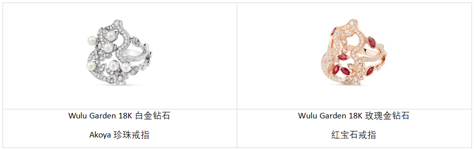 Wulu Garden新款戒指描绘春日的另一则叙事。18K白金与钻石勾勒出Wulu造型,枝蔓萦绕间尽展繁花似锦。六颗Akoya珍珠错落点缀,宛若晨露栖息叶瓣,晶莹生辉。与此同时,系列亦推出18K玫瑰金设计,钻石与红宝石交织辉映,宛如春园盛放的繁花,热烈而灵动。两款不同材质与色彩的演绎,共同展现Wulu Garden系列的美学与春日诗意。