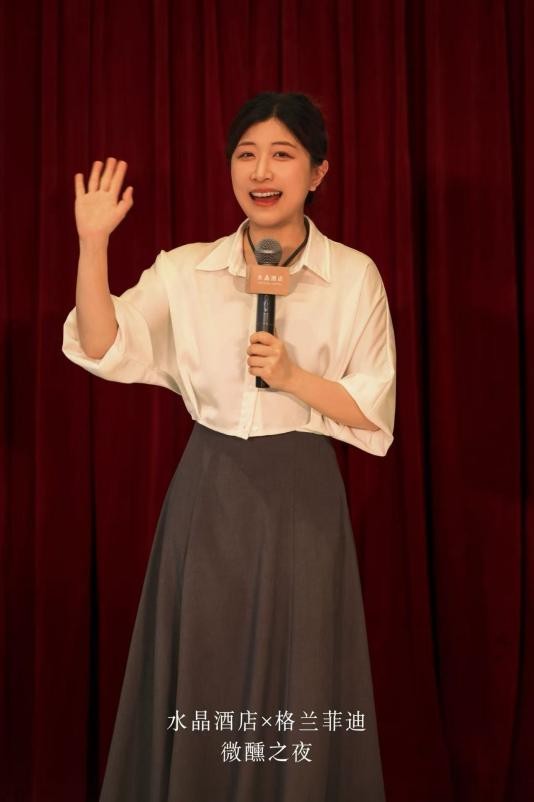 水晶酒店此次联手皇室御用威士忌品牌格兰菲迪,与最受都市精英欢迎的脱口秀演员Norah,一起打造了一场难忘的“微醺之夜”,无数观众在这一晚卸下包袱,做回闪闪发光的自己。
