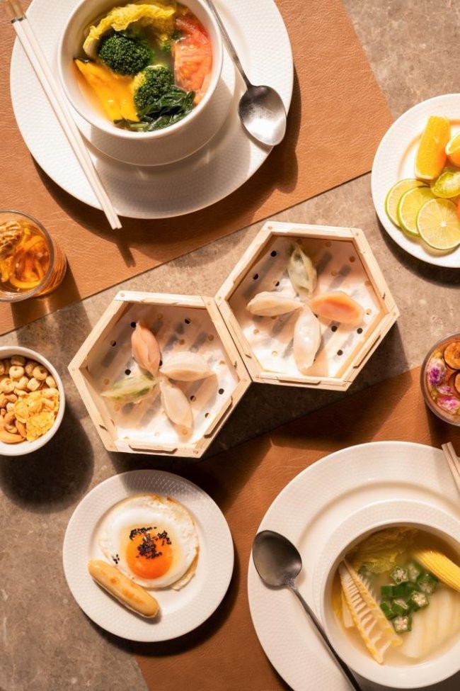 今年一季度起,这套体系又进一步向前端延伸,将“光合能量”早餐作为酒店体验的又一记忆点。针对都市精英们健康、轻盈、美味的养生诉求,推出了鸡汤有机蔬菜烫捞时蔬、元气低卡水晶饺和容光焕发养颜茶,刚一推出就收获诸多好评。在社交媒体上,“早上7点起来蹲水晶饺”、“终于不用吃酒店早餐的碳水”、“吃完气色都变好了”等自发评价,让水晶的光合能量早餐彻底成了最懂旅人的酒店早餐。