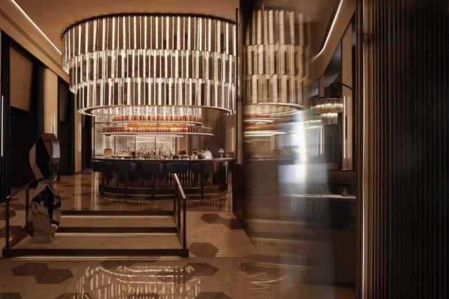 进入大堂,随处可见的水晶原石无限镜盒、六芒星发光墙和扑面而来的烟熏威士忌香氛,屏蔽了都市喧嚣,旅人的疲惫悄然消散;微醺酒廊里,慵懒的爵士乐缓缓流淌,共同构筑出一处摩登而松弛的社交空间。这便是水晶的专属能量场。
