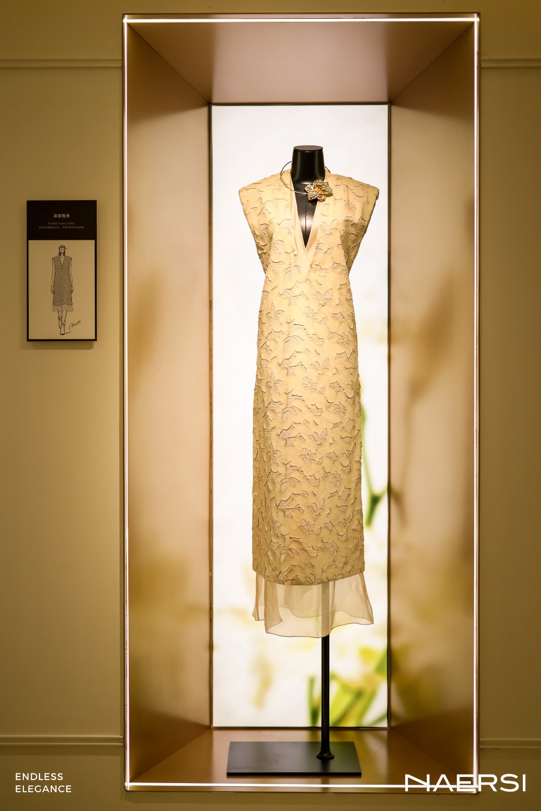 在工艺呈现上,NAERSI以佛罗伦萨的百年徽记“百合”为灵感,推出佛罗伦萨Merletto丝绣工艺系列等时装臻作。通过佛罗伦萨针绣、艺术镂空、立体格艺等细腻笔触,NAERSI将西方古典美学与东方优雅意境深度融合。大秀特设的优雅工坊静态展区更是一大亮点,通过多维度展陈让宾客得以近距离感受高级时装从工艺到精神的完整叙事,感受高端成衣背后的自在静雅的产品理念与臻质隽永的匠心传承。这既是NAERSI对品牌初心的坚守,亦完整诠释了NAERSI从本土高端品牌向国际轻奢品牌转型的设计逻辑与美学体系跃迁。