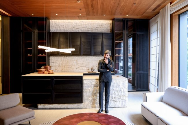 品牌核心产品由SACUCCI 首席产品创意总监 David Dolcini主导设计。出生于米兰木作世家的 David Dolcini 先生,拥有跨领域的长期设计实践,对材料、结构与细节之间的关系有着深刻而系统的理解。自 2021 年合作确立以来,在 David Dolcini 先生的创意主导之下,SACUCCI 首席公馆经历了一次具有战略意义的转型——从一家以木作与定制为核心的企业,逐步转向整体室内项目的全宅木作系统交付。此次新展厅的启幕,正是这一转型被完整实现的物理宣言:木作不再只是被观看的产品,而成为空间的基础系统,参与比例、秩序、功能与审美关系的共同生成。