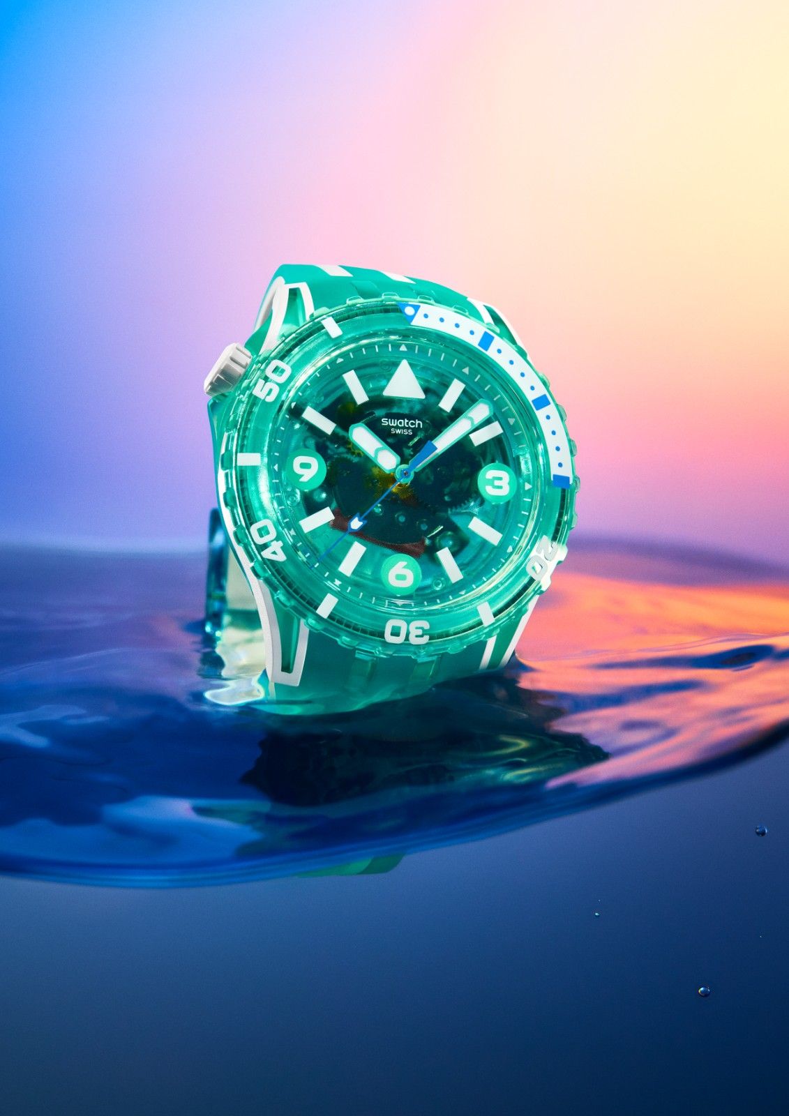 与该系列其他表款一致,全新推出的腕表表冠位于 10 点钟位置,不仅提升安全性,更展现别具一格的标志性造型。配备彩色透明表盘和 44 亳米表壳,结合夜光细节,确保腕表在任何环境下都清晰易读。该系列腕表更具备高达 10 巴的坚韧防水性能,传承瑞士斯沃琪 SCUBA 系列腕表的精髓。