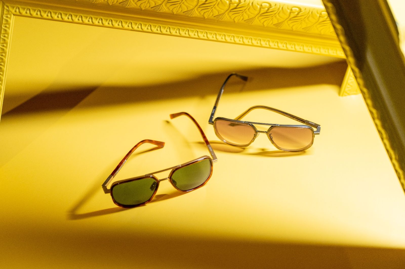 杰尼亚标志性 232 号公路品牌标识灵感源自 232 公路——由品牌创始人开辟,旨在将杰尼亚绿洲的天然大地与当地社区相连。232号公路品牌标识贯穿整个眼镜系列并以多种饰面处理,最格外显著展现在桩头上,为款式注入一抹现代气息。