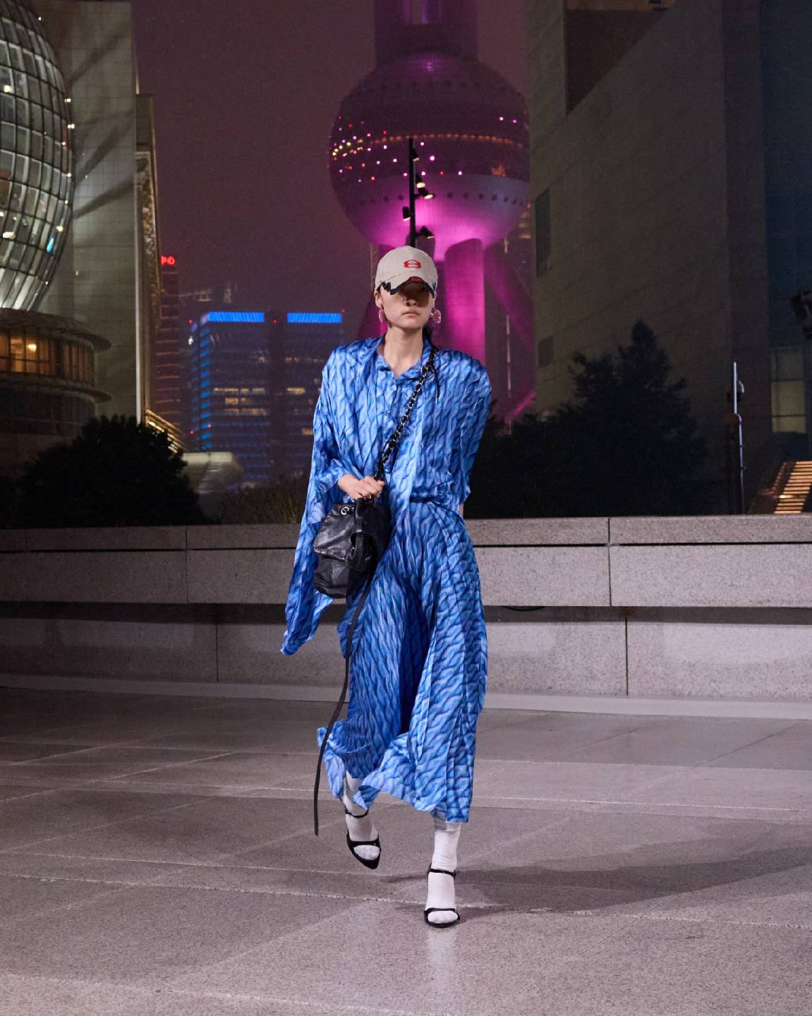 春季 25 系列发布秀是 BALENCIAGA 在上海发布的首场大秀。当夜幕降临,在外滩和上海标志性天际线的映衬下,发布秀于浦东美术馆的户外空间开启时尚盛宴。