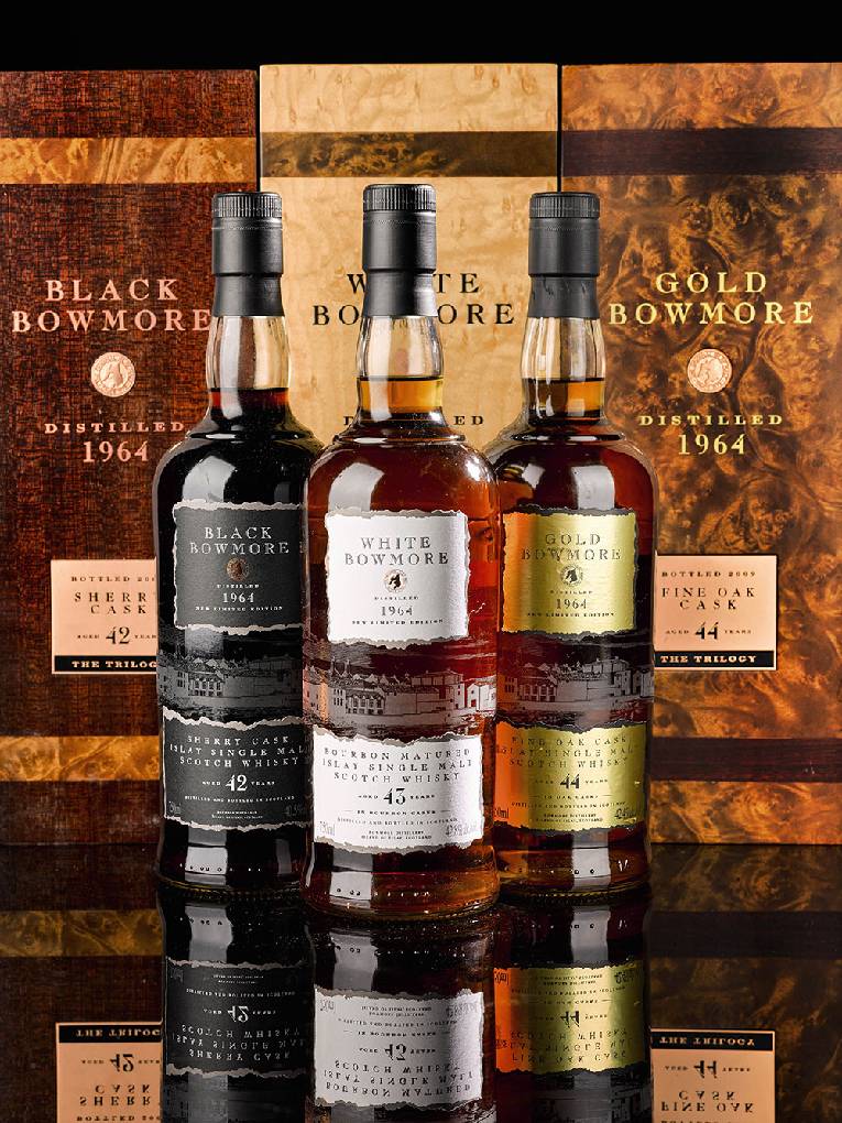 这套Black Bowmore、White Bowmore和Gold Bowmore于2007至2008年释出,极少见于市场,并全部来自1964年。Black Bowmore 1964是1993年、1994年和1995年Black Bowmore系列的延续,而这些系列此后均成为标志性的苏格兰威士忌。这支Oloroso雪莉桶威士忌则与波本桶White Bowmore 1964,及混合波本和Oloroso雪莉桶的Gold Bowmore 1964组成本套拍品。
