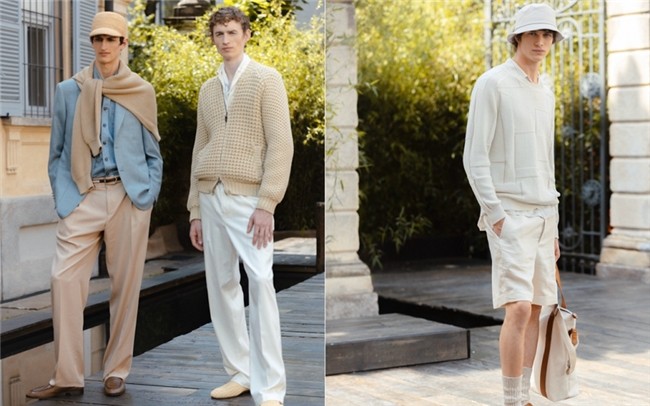本季的面料选择延续CANALI一贯的考究与精良,细羊毛、亚麻布、纳帕皮革以及丝绸形成丰富层次。色调搭配更为轻松明快,湖蓝色、深棕色、棕褐色、阿卡色和以波罗米安群岛(Isole Borromee)为灵感的绿色交织映现,引领春夏优雅新风。拉菲草帽、水桶帽、运动鞋、便鞋和凉鞋等配饰,以及简洁的斜挎包,点缀造型,完整绅士意趣。对CANALI而言,“绅士的品质”包罗万象,从制衣方式、穿着场景,延伸至衣着传递的生活方式,其内核,便是纯粹的意式雅趣:衣、食、风景等一切美好皆赏心悦目,悠然自得间,享受其中。