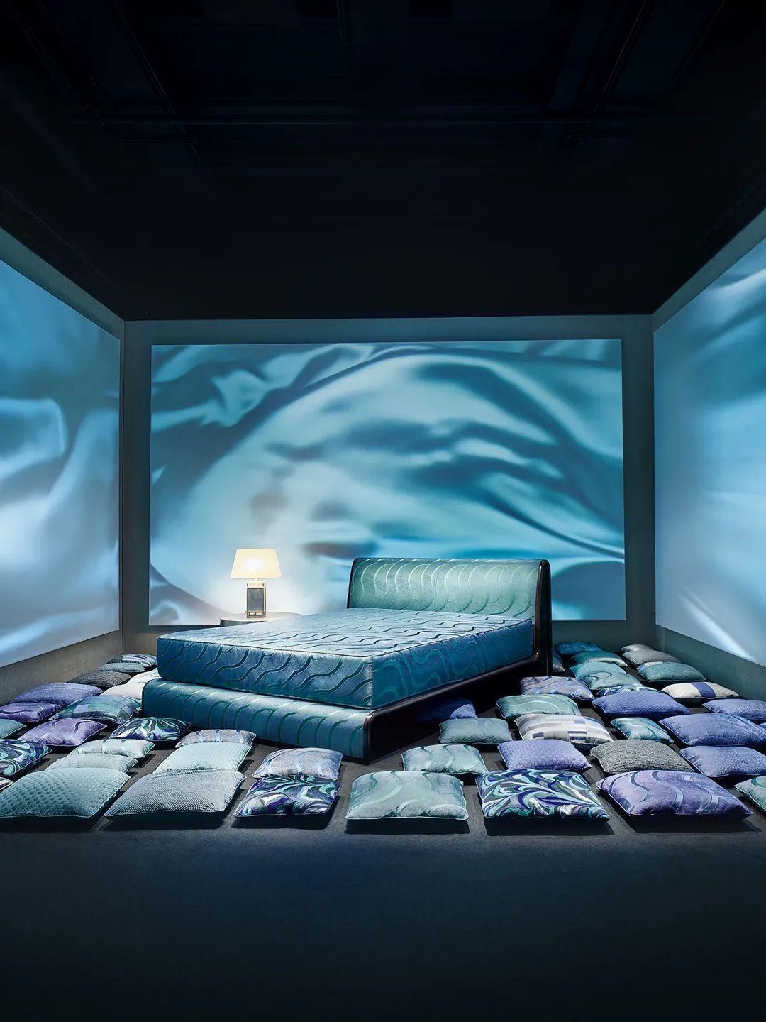 在由茶色色调和飘逸的丝绸装饰的空间中,纺织品这一连接时尚和家具的元素是其焦点。在具有悬浮结构的Morfeo床营造的亲密环境中,这些卓越的珍贵纺织品的广泛用途在舒适的理念中得以展现。