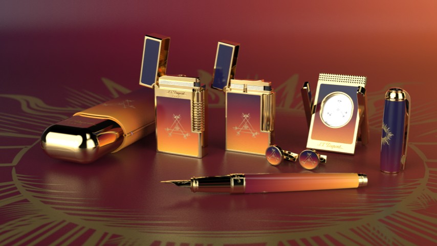 联名系列Ligne 2 朗声打火机顶端饰有法国都彭品牌标识,配以24刻的精妙点火轮,为鉴赏家们提供了优雅而愉悦的点火仪式。经典朗声工艺再度证明了品牌在燃火艺术领域中的不凡成就。