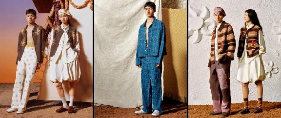 本次联名系列在传统女装、男装的设计基础上,为崇尚自然无拘的时尚爱好者挚造多款男女同款服装,彰显隽永格 调的同时营造出别具一格的随性氛围。该系列甄选优质面料结合精裁版型,附以多变廓形及灵动细节并融入工装元 素,打造出兼具包容度和故事感的都市着装。柔软 T 恤与夹克外套多处饰以三角针与贝壳针缝线,增添简约趣味; 靛蓝牛仔单品通过镭射烂花工艺雕刻经典环绕拱门,以现代技术焕新经典元素;衬衫式提花连衣裙、俏皮时髦的气 球裙、线条俊朗的各类工装风格裤装唤醒明快的都市感官体验。三款穆勒鞋与轻盈随性的挎式拼接包袋通过不同材 质为为整体造型加以注解,以复古格调与意趣色彩交错出新季灵感。