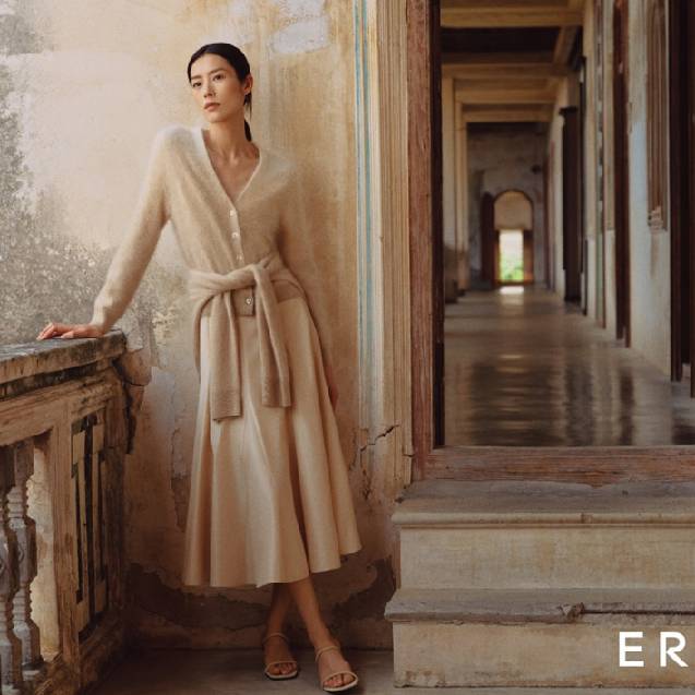 春夏与羊绒的关系被设计师无限延伸和诠释,多元风格之下的柔软形态与着装者的情绪感受轻盈贯通。高纱织精纺羊绒的极致轻薄,松密度工艺赋予羊绒更多呼吸感与通透性,细腻触感的治愈感受,让穿着者跟随羊绒抵达柔软之境。本季贴合当下的实用主义生活方式,推出更加丰富的可机洗针织系列,让羊绒、桑蚕丝等珍贵材质以更轻盈的方式融入生活。除此之外,延续品牌一贯倡导的可持续时尚理念,微生物染色及植物染色系列,用更加天然的方式为羊绒着色,保留其珍贵纤维光泽的同时,减少染色过程对于环境的污染,更致力于推动环保染色工艺的发展,为自然永续温暖助力。