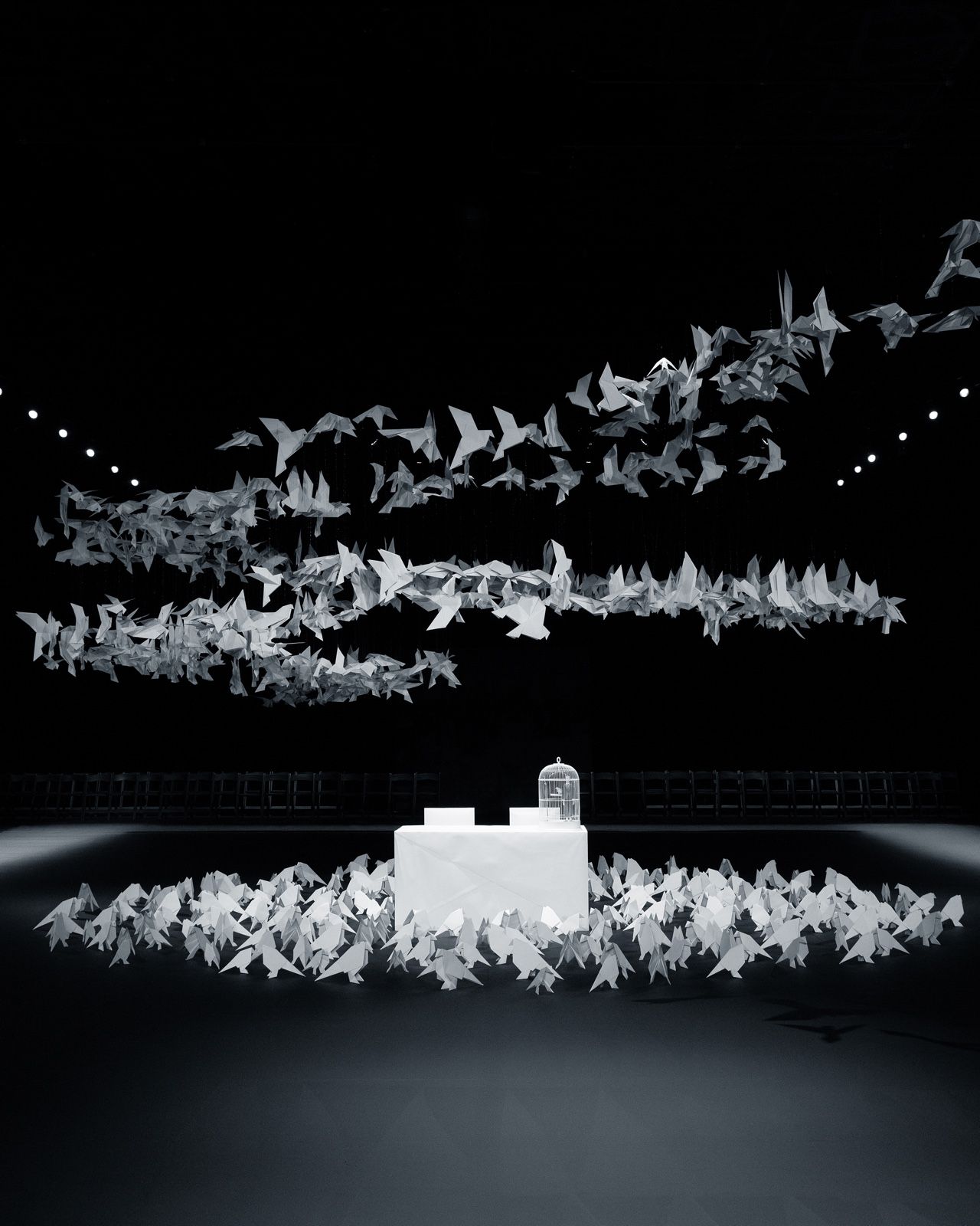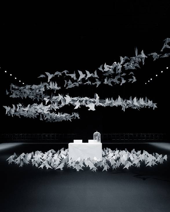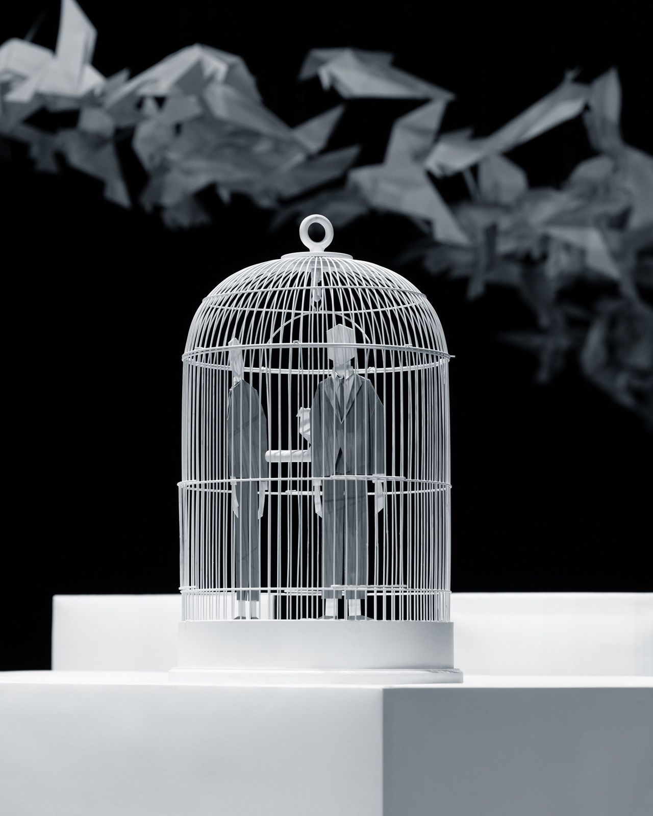 被2000只折纸鸟儿环绕着,两只笼中的爱情鸟渴望自由。当它们透过笼子向外望去,一群奇幻的鸟群飞过,“如果我们能成为真正向往的样子,那该有多美妙?” 它们思索着。