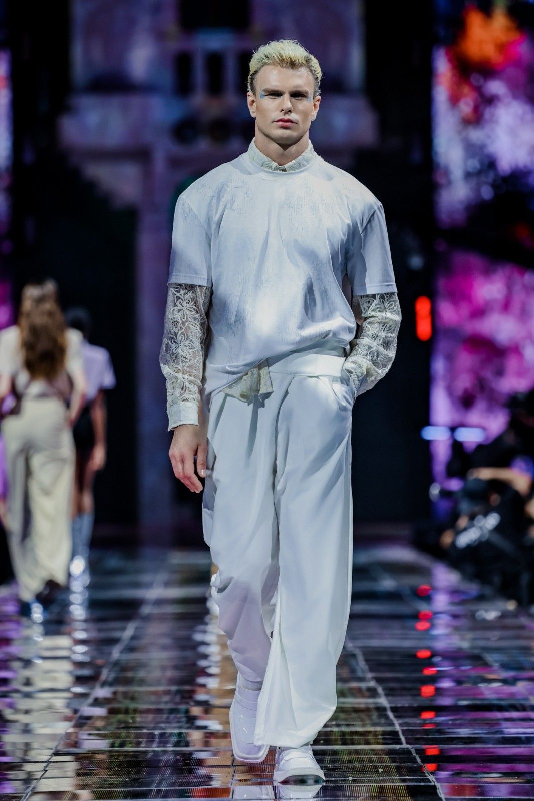 作为首届泉州时尚周的开幕大秀,七匹狼以“多彩世遗·时尚泉州”为主题,将千年海丝文化、世遗元素与前沿科技融于2025春夏系列新品之中。大秀以灯光点亮泉州六大世遗地标建筑,力邀泉州市政府领导、多位闽商企业家及奥斯卡双影帝阿德里安·布劳迪、演员欧豪,文化体验官、演员于晓光,演员韩栋,以及演员、歌手孙芮等明星同台观秀。