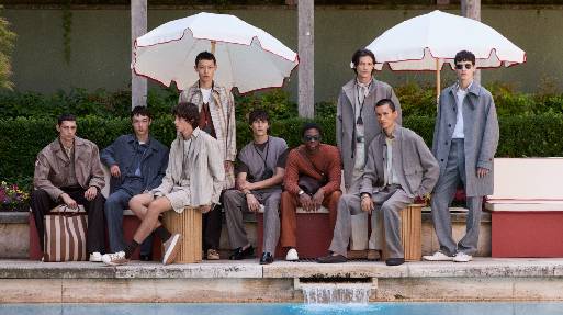 此外,本季对天然面料进行了全新探索,将传统亚麻材质通过三种高级工艺重新演绎:轻盈的绉纱处理赋予面料灵动垂感;光泽缎面工艺提升整体奢华度;而与丝绸的创新混纺则创造出别具一格的流动质感。这些突破性处理使亚麻单品——特别是本季主打的狩猎夹克系列,既保留了标志性的慵懒度假风情,又增添了令人惊喜的精致细节。
