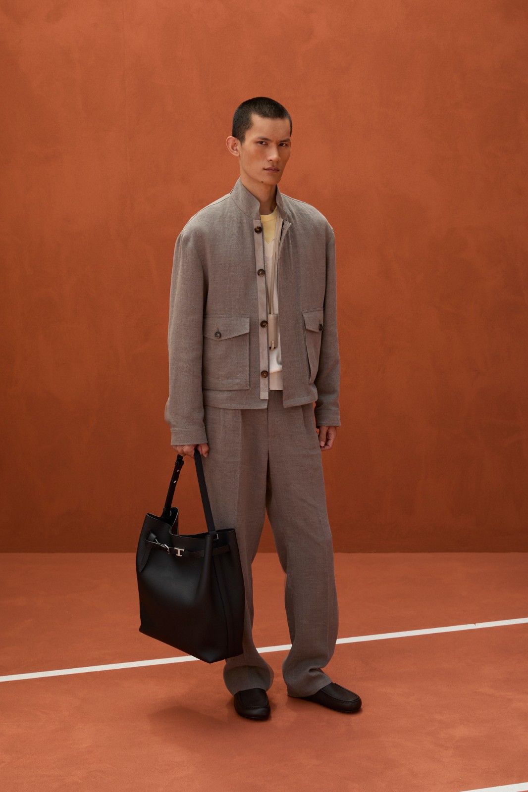 TOD'S 于春夏推出全新Travel-wool旅行羊毛系列。这种创新材质在保留纯羊毛天然特性的同时,实现轻盈柔软且亲肤。系列中的旅行外套和长裤特别采用立体剪裁,满足舒适的穿着追求,轻松应对长途旅行中的各种场合。同时,T-Field系列以短款设计回归,尽显其现代摩登气质。