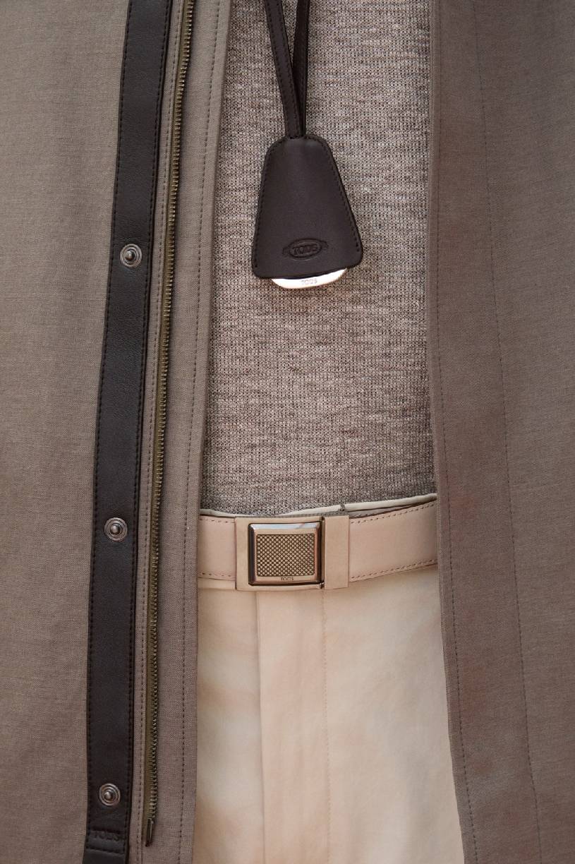 本季成衣简洁的廓形搭配流畅的线条,暗藏灵动巧思,完美平衡了结构感与舒适度。特别值得一提的是,新季夹克采用创新非结构化设计,以精湛的剪裁塑造随性而不失考究的轮廓。与之相配的长裤则遵循人体工学原理,通过精准的版型设计实现与身体律动的完美契合,让穿着者在举手投足间尽显从容闲适气度。TOD’S精准把握当代男士着装需求,在确保卓越品质的同时,诠释形随心动的设计哲学,完美适配从都市通勤到周末远足的多场景需求。