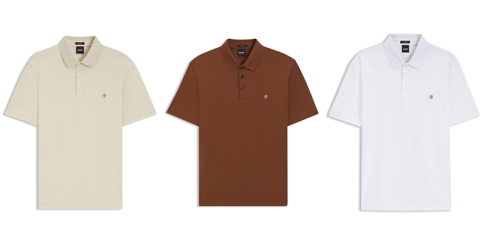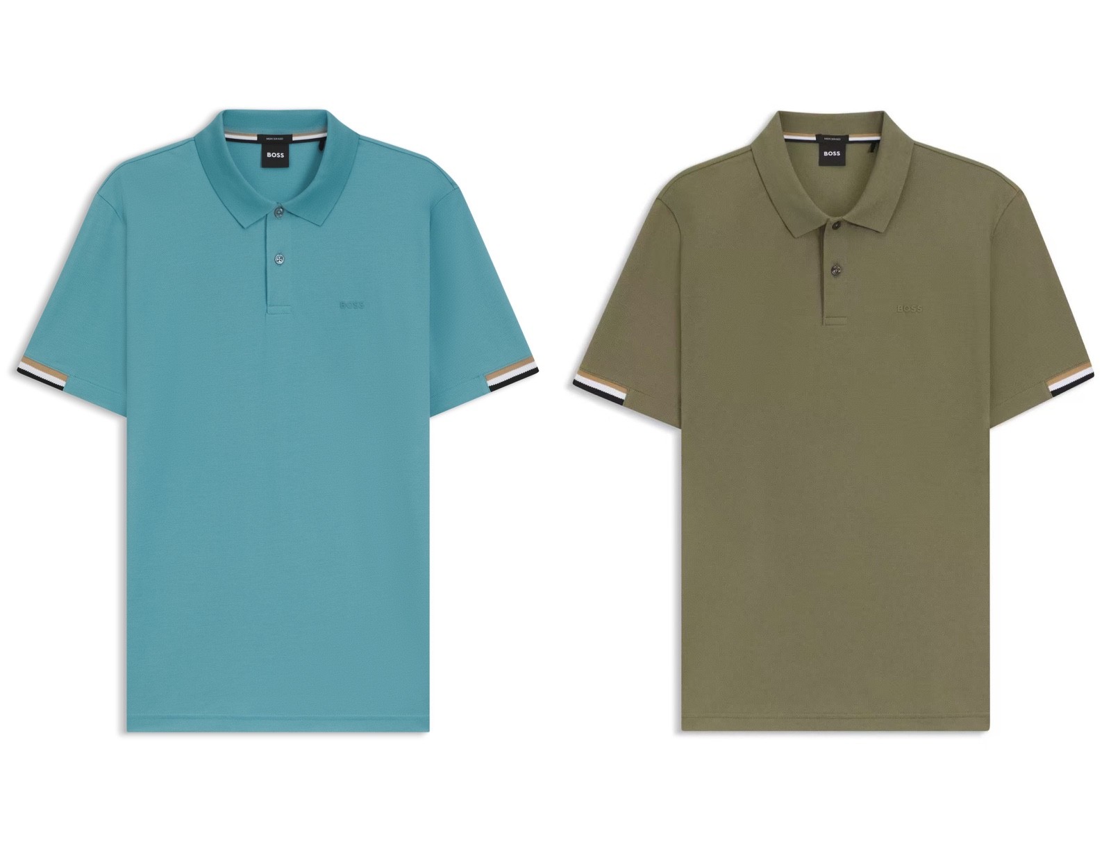 BOSS经典版型Polo衫系列选用舒适挺括的纯棉珠地布或丝光棉面料,细节设计融入袖口与衣领的品牌标志性三色条纹或胸口的字母B铰链徽标,合身剪裁兼顾日常通勤与轻商务场合,并提供丰富的经典配色和季节性配色选择。
