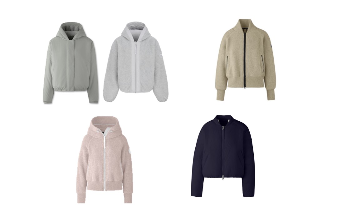 从左至右:CANADA GOOSE加拿大鹅 女士Alberni双面抓绒飞行员夹克(银桦麻灰/银桦白)