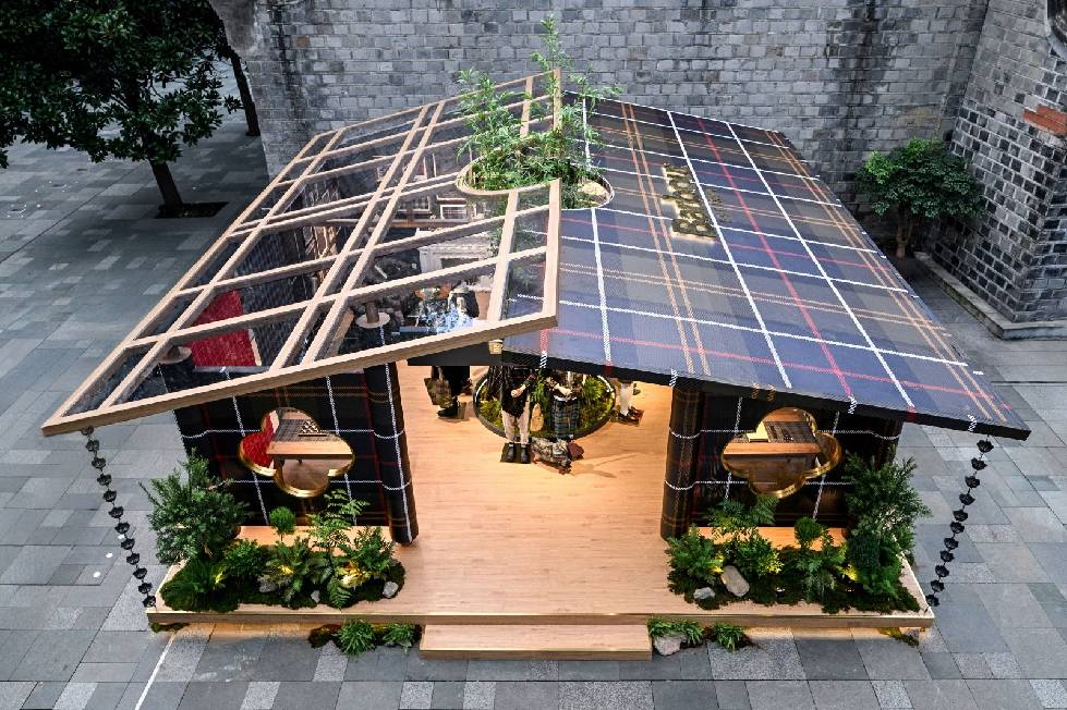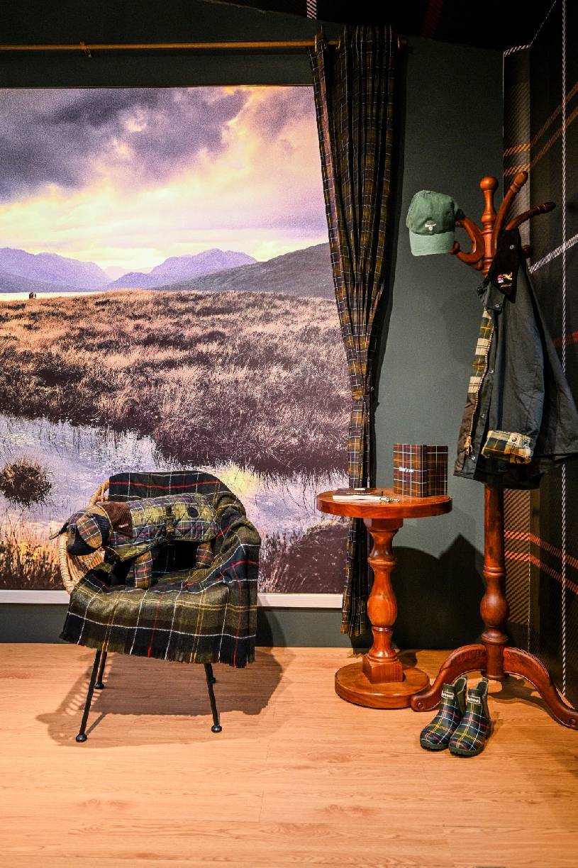 本次快闪活动位于成都太古里马家巷,整体的空间设计秉持“双承共叙,景建交融”的理念,巧妙融合英国Barbour家族标志性格纹图案与中国西部古蜀传统建筑风格,既延续品牌经典基因,亦致敬成都在地文化。快闪店外观以格纹元素为视觉基调。通过将品牌精髓、地域文化与建筑美学有机交融,这一独特空间为成都消费者带来一场贯穿东西、融汇古今的沉浸式文化体验。快闪店内陈列Barbour秋冬Tartan系列,呈现历久弥新的工艺与设计;更设有品牌独家Tartan格纹面料展示区,深入解读每一款格纹背后的历史渊源与美学密码。互动区域中,来宾可在特别定制的Tartan格纹香片上记录下感悟,并将其携回珍藏;亦或参与Tartan 格纹扇子DIY创作,定制独具个人风格的创意。