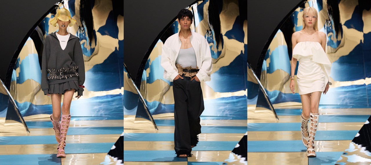 束带、抽绳、卫衣面料等休闲运动元素经由创意化的柔和剪裁——如束拢的气球状半裙,更具空气感和活力感。