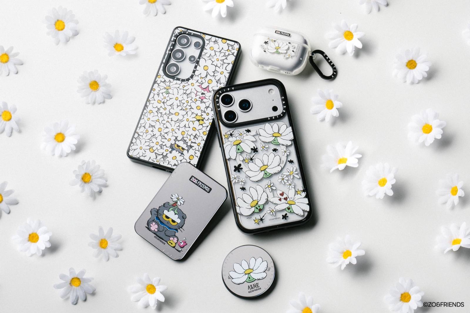 ZO&FRIENDS 这些因不够完美而更显完美的朋友们, 由 G-DRAGON 与 IPX 共同创作:动作迟缓、看似冷淡却温柔的云猫 ZOA ,可爱又爱管闲事的雏菊 A&NE ,以及从 “ZOA” 像云朵一样的脚印中诞生的调皮小彩球 AKI ZAKI ,共同呈现了一个充满乐趣的奇妙世界。作为 ZO&FRIENDS 在电子配件领域的首个联名合作品牌,CASETiFY 将 ZO&FRIENDS 的温暖能量融入电子配件,为多款机型及配件提供更加个性化的选择,让可爱与创意在日常中流动。