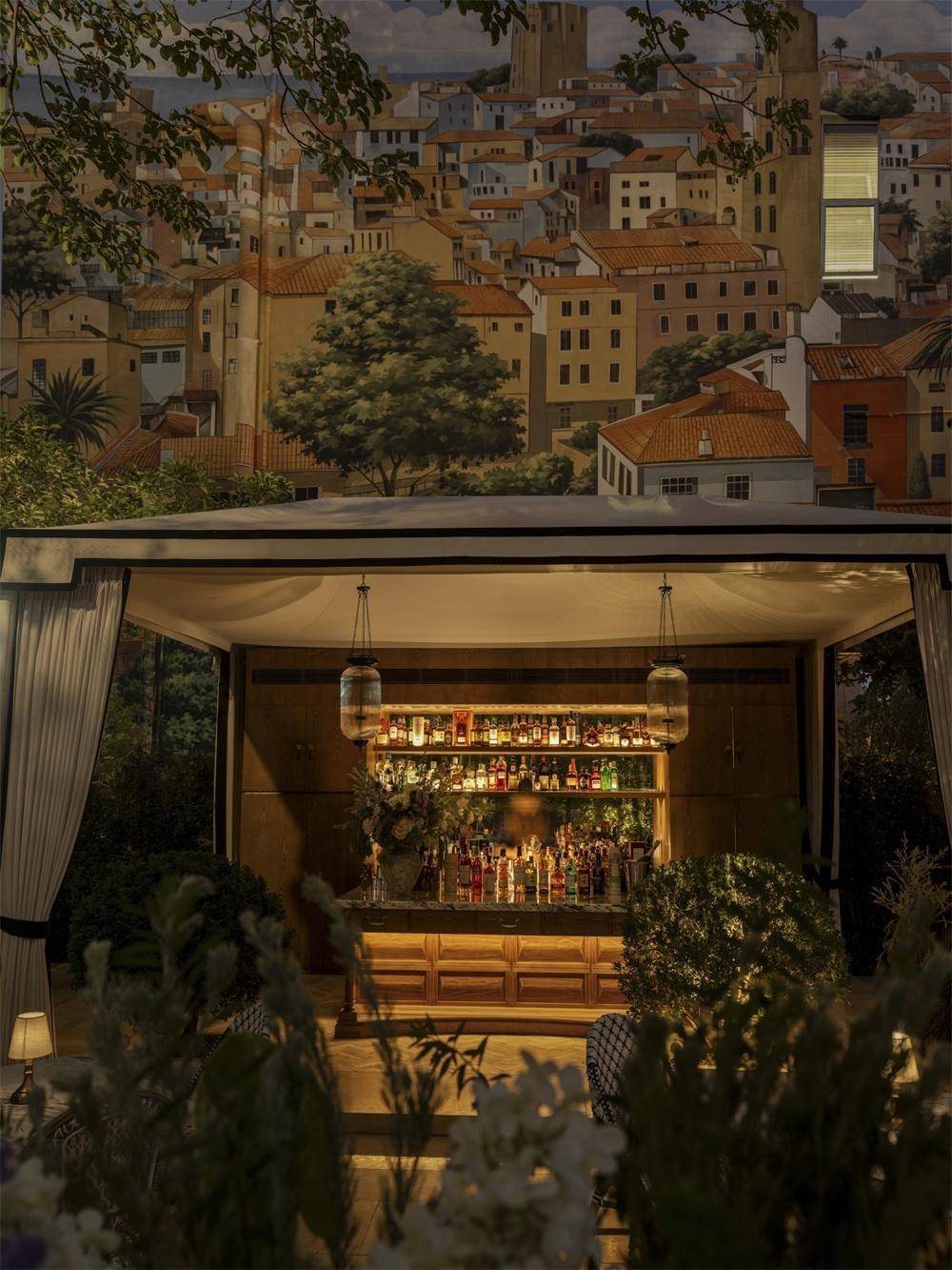 户外花园以低饱和自然色调铺陈,融合南法庭院布局、欧式花盆与明清石雕,在新旧交织中展现独特文化张力。花园侧翼设独立吧台,以唐人街意象叠加法式庄园氛围,为城市社交注入松弛调性。开阔区域可眺望沙河高尔夫球场,午后光影与傍晚微风自成景致。花园亦预留三处高尔夫打位,让来宾在私域空间中即可体验挥杆的仪式感与从容。