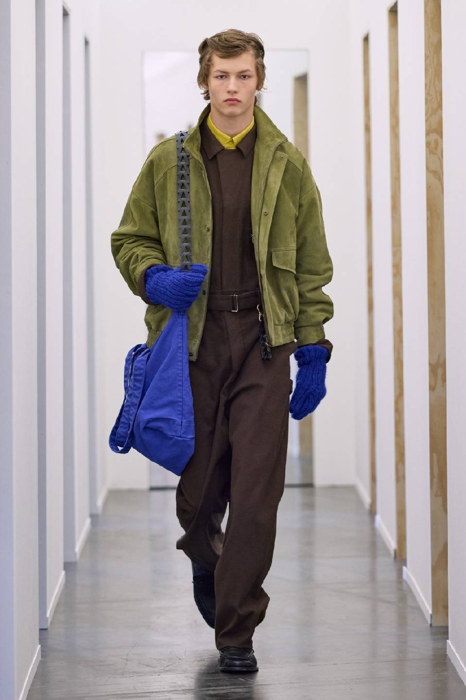 配饰通过工艺延伸叙事:手工编织的皮革缆绳充当包带、钥匙扣及眼镜绳。低帮乐福鞋搭配绒面革拖鞋,完成了双重性的表达。