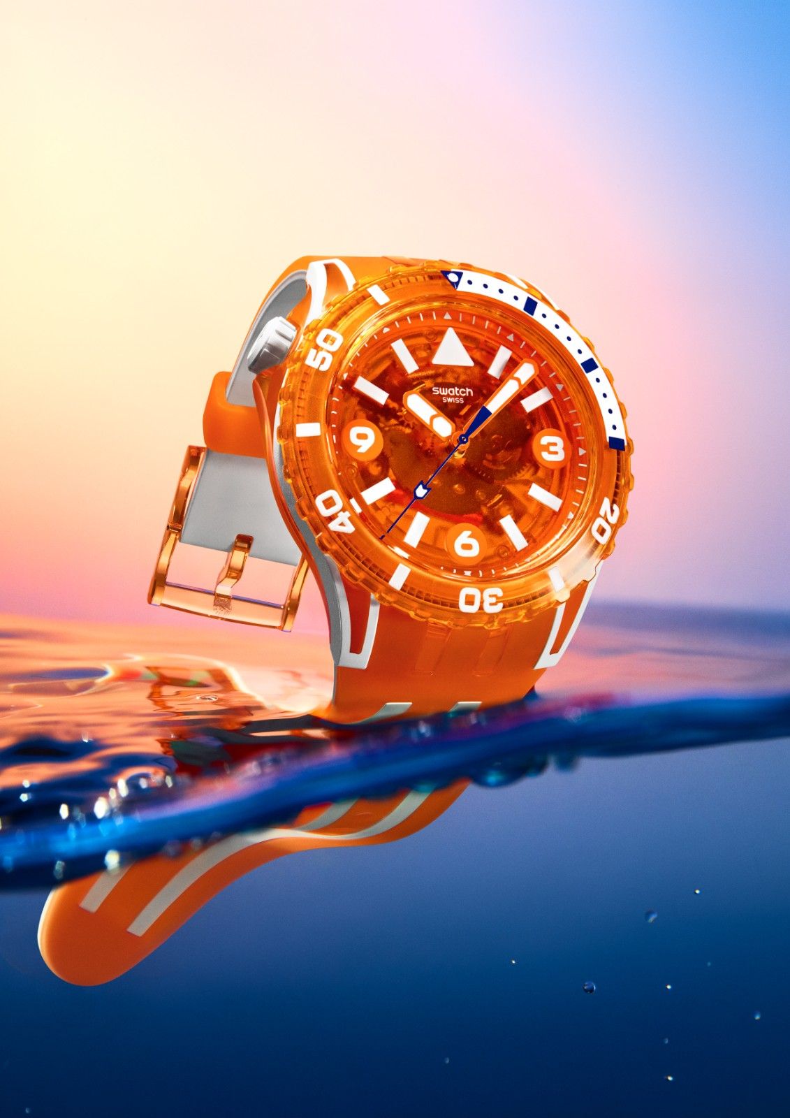 与该系列其他表款一致,全新推出的腕表表冠位于 10 点钟位置,不仅提升安全性,更展现别具一格的标志性造型。配备彩色透明表盘和 44 亳米表壳,结合夜光细节,确保腕表在任何环境下都清晰易读。该系列腕表更具备高达 10 巴的坚韧防水性能,传承瑞士斯沃琪 SCUBA 系列腕表的精髓。