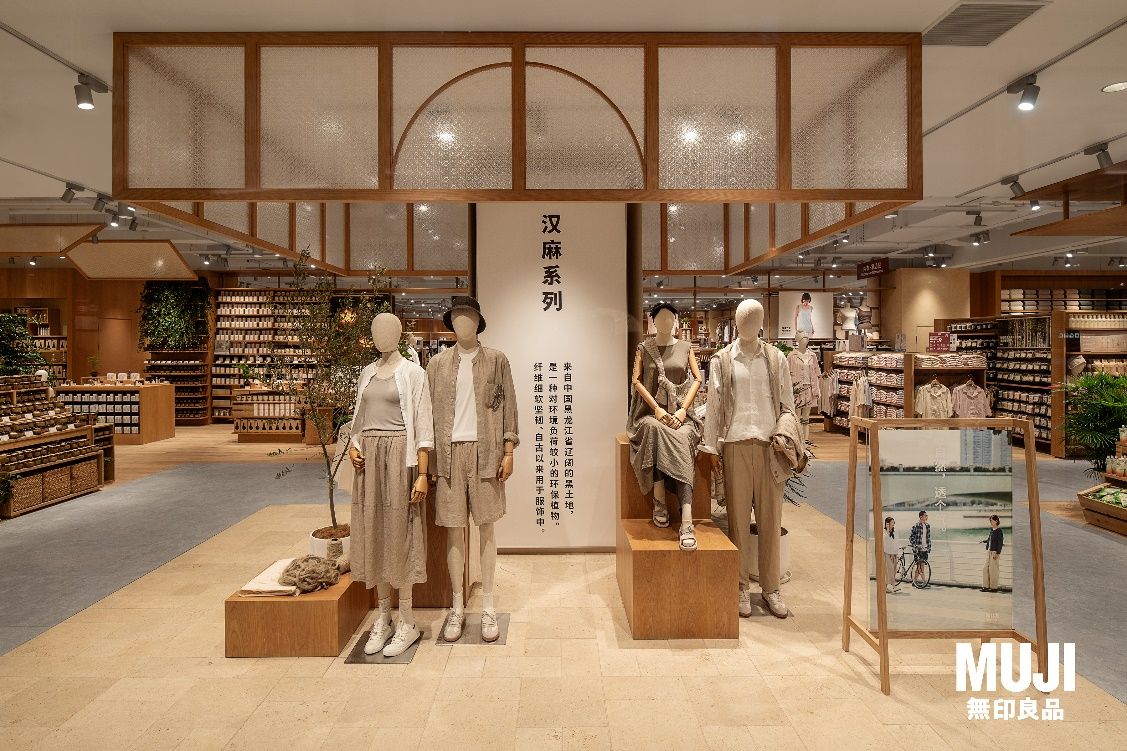 MUJI上海新六百YOUNG城市旗舰店店内商品种类丰富,涵盖服装、生活杂货、食品、家居等多个品类。春夏新品服饰,汉麻设计师系列首发上市,该系列为2025年「自然出新裁」汉麻新生力设计大赛中脱颖而出的获奖作品,包括金奖作品《大地之上》带来无袖花苞连衣裙、圆领罩衫等款式;银奖作品《旧韵新生》以茶花纹样为特色的法国袖连衣裙、盘扣衬衫等款式;铜奖作品《游》以游牧文化为灵感的斜纹直筒裤等单品。汉麻自然、透气的材质可以让身体时刻保持清爽、舒展,让人们的身心能够畅快呼吸,自在沉浸于当下时节。